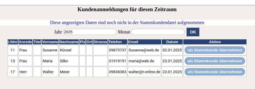 Wenn Sie den Button "als Stammkunde übernehmen" anklicken wird der Datensatz samt angelgten Terminen in die Stammkundendatei übernommen.